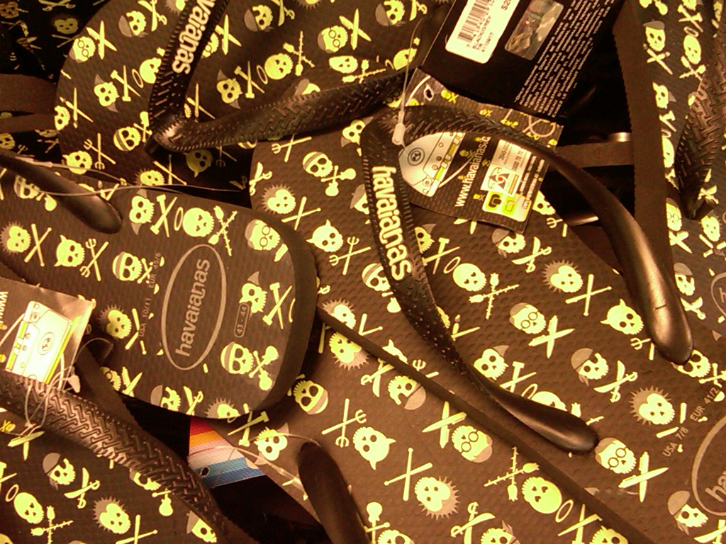 You heard of the Sea of Love? Well check out the Sea of Havianas! During my last trip to Miami, I discovered a different sea at TOOTSIES (305-674-0068). This salon and boutique has the largest selection of these wonderful rubber sandals in Miami. Skulls, flags, hearts, stripes, dots…you name it. The novelty of seeing all the unique styles in baskets all over the store, made me become an instant collector. I walked out with 3 pairs later and a reunion with a old friend (the owner). What a pleasant afternoon. Summertime, I’m ready!!!